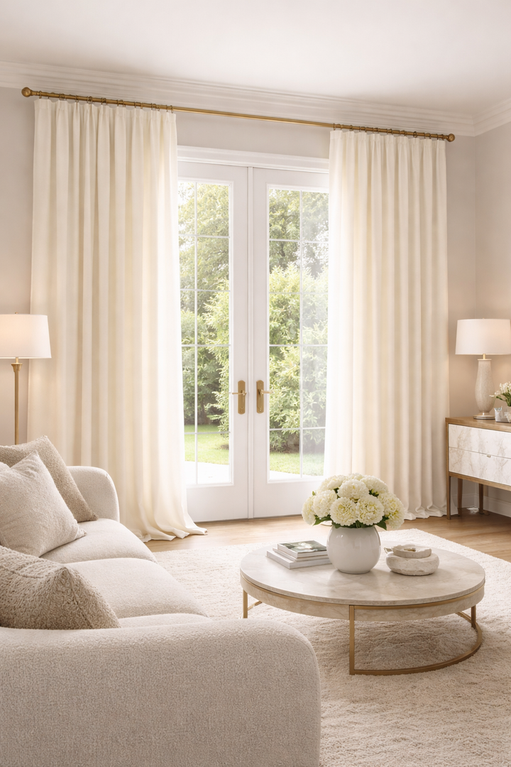 Luxury Drapery | 100% Italian Organic Wool Doppio Crespo is a luxury double crepe drapery fabric crafted from 100% Italian organic wool, offering exceptional refinement, purity, and performance. Woven in Italy using responsibly sourced organic fibers, it embodies both environmental integrity and timeless European craftsmanship. Its double-woven construction provides graceful structure while maintaining a fluid, elegant drape. The softly pebbled crepe texture gives the surface subtle depth, diffusing light with a rich matte finish rather than sheen. The hand is smooth, velvety, and substantial — delivering quiet sophistication the moment it is touched. In ivory, Doppio Crespo reveals warmth and softness without harshness, making it ideal for elevated residential interiors, luxury hospitality, and tailored architectural window treatments.